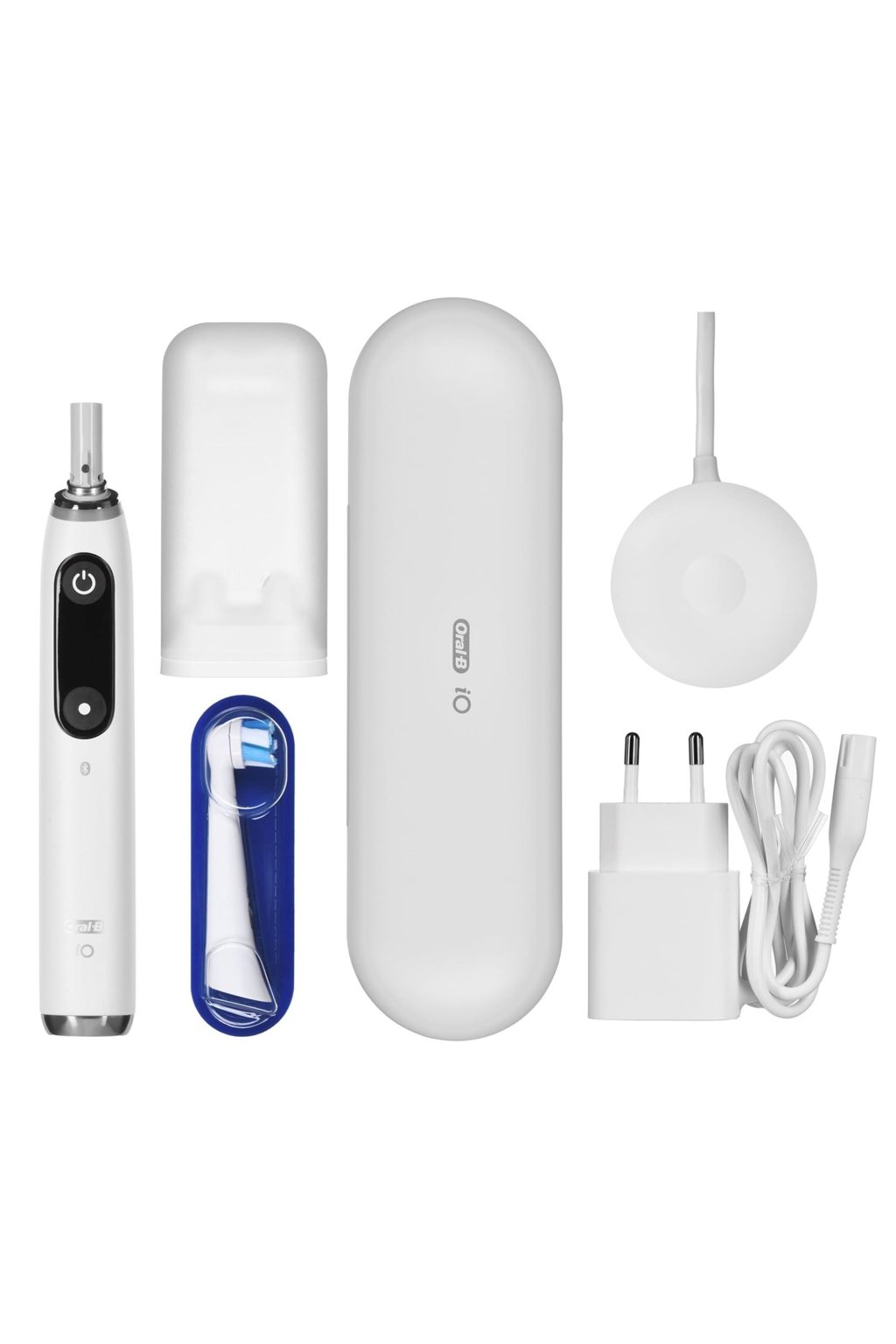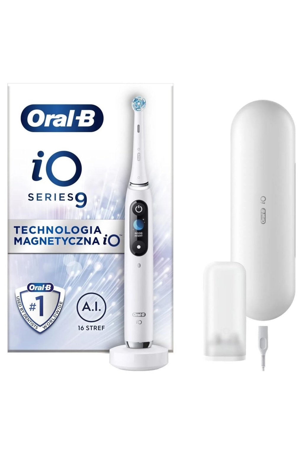 Az Oral-B iO9 Series White elektromos fogkefe elegáns fehér színben kapható, amely egy tiszta és modern megjelenést kölcsönöz a fürdőszobájának. A fogkefe testéhez fehér és szürke színek harmonizálnak, miközben a fogkefe fejének a tetején lévő kék színű LED fények kiemelik a készülék technológiai fejlettségét. A fehér ház és a fekete érintőképernyő kiemelkedően letisztult dizájnt biztosít, miközben a gombok és az érintőképernyő a fogmosás közben könnyen kezelhetők.