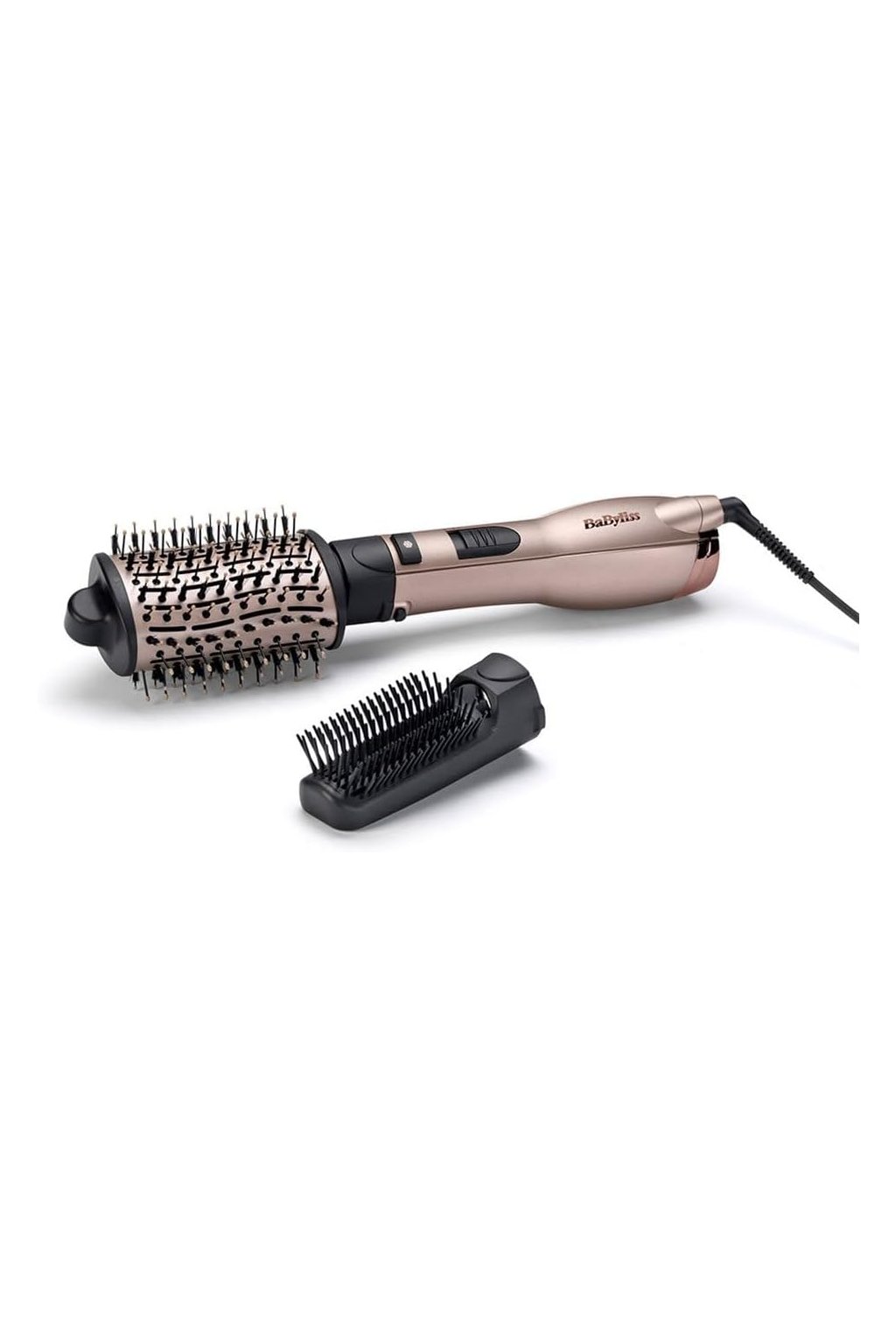 A BaByliss AS90PE professzionális forgó kefe rendszerrel van felszerelve, amely megkönnyíti a kezelést és a frizura formázását felesleges erőfeszítés nélkül. A kefefej javítja a levegő áramlását a haj teljes hosszán, és lehetővé teszi sima vagy finom, nagyobb volumenű hullámok kialakítását a stílus technikájától függően. A hőmérséklet és a levegő sebességének szabályozásával a teljesítmény a haj típusához igazítható – a finomtól a sűrű és nehezen kezelhető hajig.