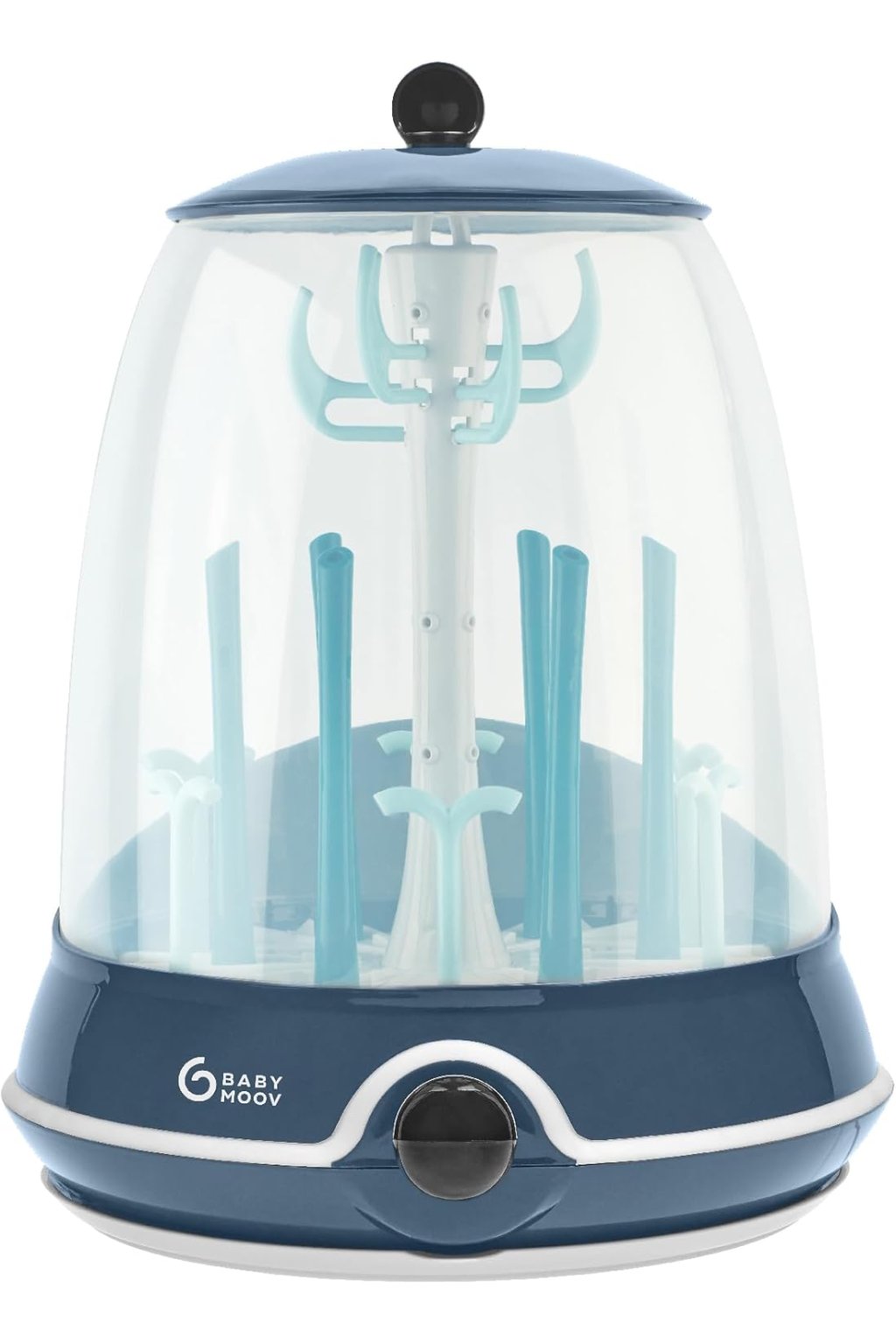A Babymoov TURBO STEAM+ elektromos sterilizáló egy modern és intelligens segédeszköz minden kisgyermekes háztartás számára, amely gyors és hatékony sterilizálást biztosít cumisüvegek, cumik és egyéb csecsemőápolási eszközök számára, vegyszerek használata nélkül. Ez az elektromos sterilizáló a Turbo Steam+ nagy teljesítményű gőzét használja, amely elpusztítja a baktériumok és vírusok 99,9%-át, így segít megvédeni gyermeke egészségét az első napoktól kezdve. Kialakítása úgy lett megtervezve, hogy egyszerre több tárgyat is könnyedén elhelyezhessen benne – cumisüvegeket, cumikupakokat, cumikat és egyéb apró alkatrészeket –, és a sterilizálás gyorsan és egyenletesen történjen.