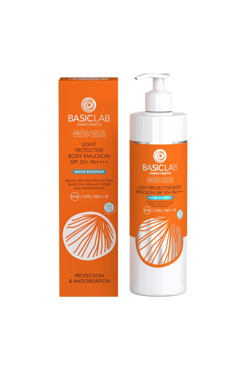BASICLAB könnyű testápoló emulzió SPF 50+, 300 ml egy kiváló minőségű napvédő emulzió, amely megbízható védelmet nyújt a bőrnek a káros nap sugárzása ellen. Könnyű és nem zsíros textúrája gyorsan felszívódik, nem hagy ragacsos érzetet, és lehetővé teszi az egyenletes felvitelt az egész testen. Magas szintű, széles spektrumú védelmet nyújt az UVA- és UVB-sugárzás ellen, ezzel segítve a bőr károsodásának és a korai öregedésnek a megelőzését. Az emulzió egyúttal támogatja a hidratálást, és egész nap puha, sima és kényelmes érzést biztosít a bőrnek. Alkalmas mindennapi használatra, valamint a napnak kitett érzékeny bőrre is.