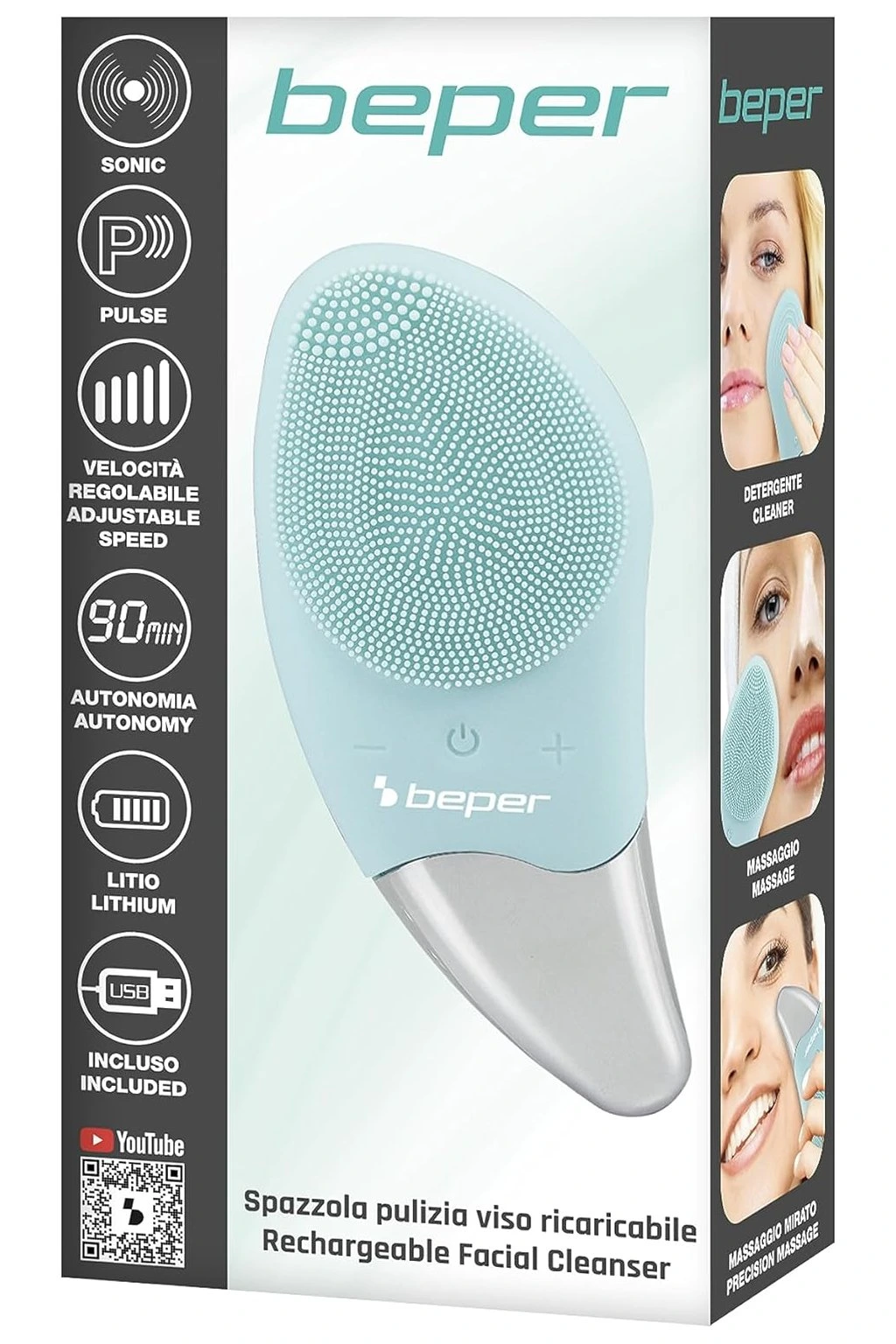 A Beper P302VIS002 finom, hatékony és higiénikus arc tisztítást biztosít, hosszú élettartamú akkumulátorral és minden bőrtípusra alkalmas.