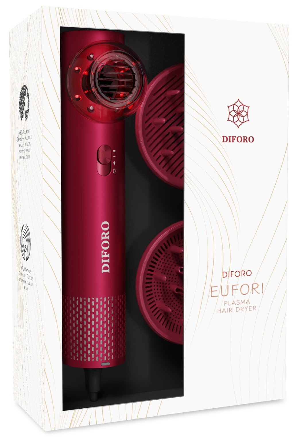 A Diforo Eufori egy egyedülálló és teljesen új megközelítést képvisel a hajszárítás és -formázás terén. Az Eufori legnagyobb előnye és megkülönböztető jellemzője a plazmafény, egy kis eszköz, amely a levegő kivezetésénél helyezkedik el, és a plazma cseréjének köszönhetően a levegő részecskéit pozitív és negatív töltésű koncentrált plazmával telíti.
