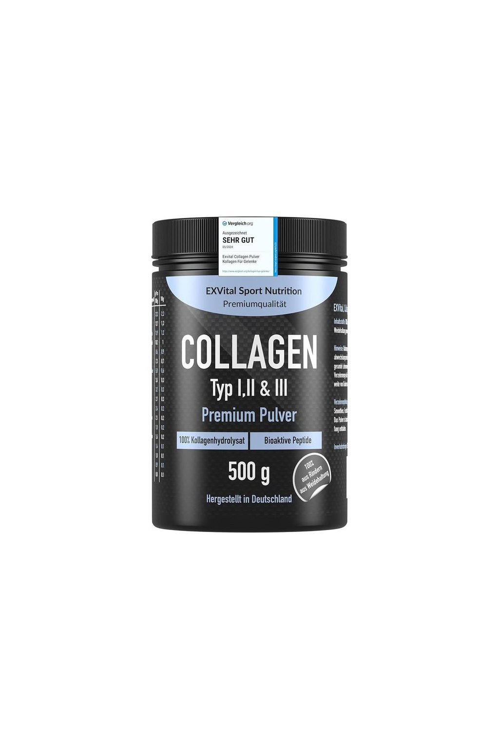 Emelje fel wellness rutinját az Exvital Sport Nutrition kollagénporral. Ez a prémium minőségű, bioaktív kollagén-kiegészítő legelőn nevelt szarvasmarhából származik, és az 1-es, 2-es és 3-as típusú kollagén hidrolizált peptidjeinek erőteljes keverékét tartalmazza.