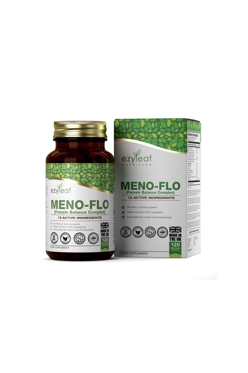 Az Ezyleaf Meno-FLO egy étrend-kiegészítő, amelyet a nők egészségének támogatására terveztek, különösen a menopauza idején. Természetes összetevők keverékét tartalmazza, beleértve a vörös lóherét, a Dong Quai-t, a vad Yam-ot, a szója izoflavonokat, a zsályalevelet, az esti primrose olajat, a magnézium-citrátot, az Ashwagandha-t és még sok mást. Ezek az összetevők együttesen segítenek kezelni a menopauza tüneteit, például a hőhullámokat, az éjszakai izzadást és a hormonális egyensúlyhiányt.