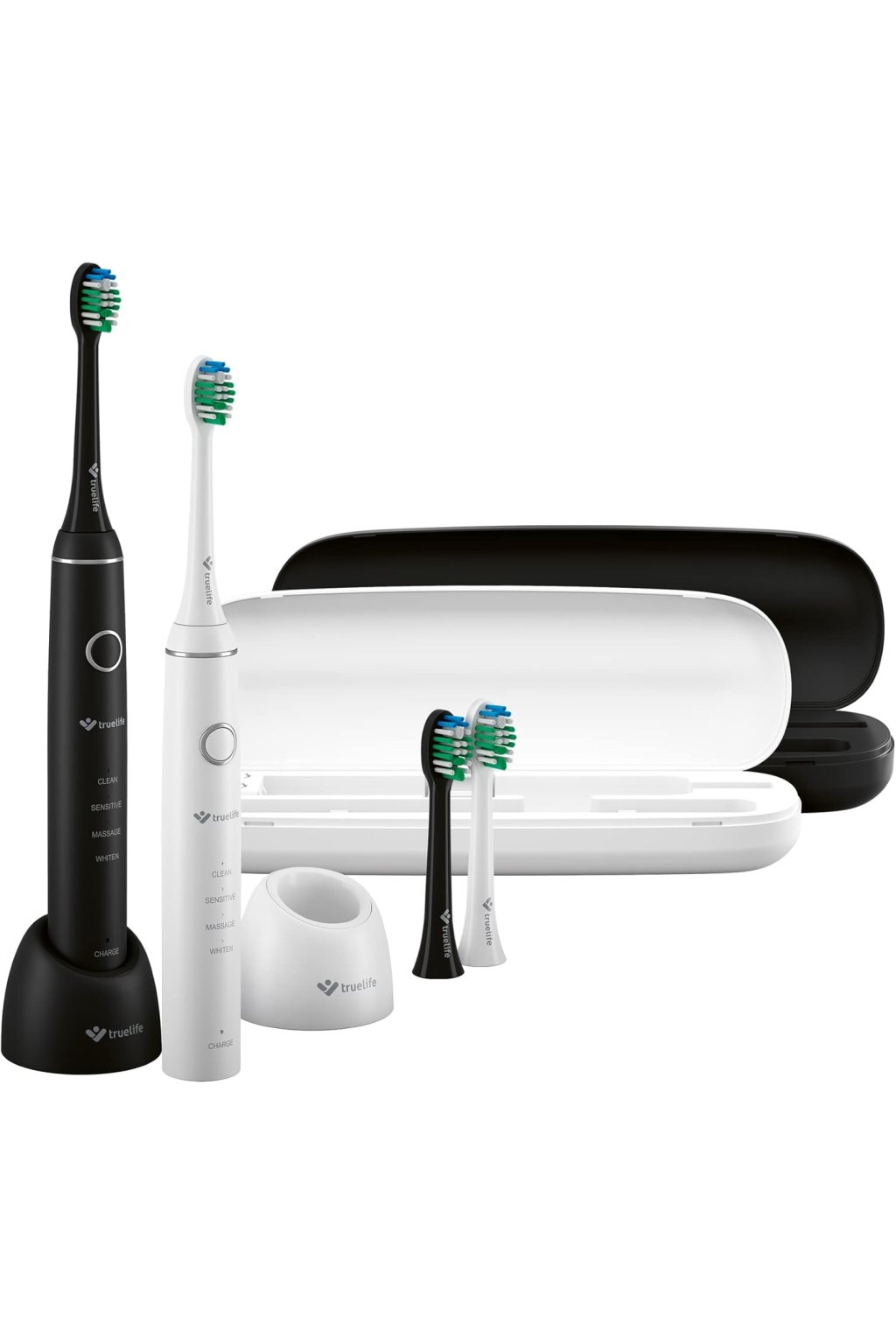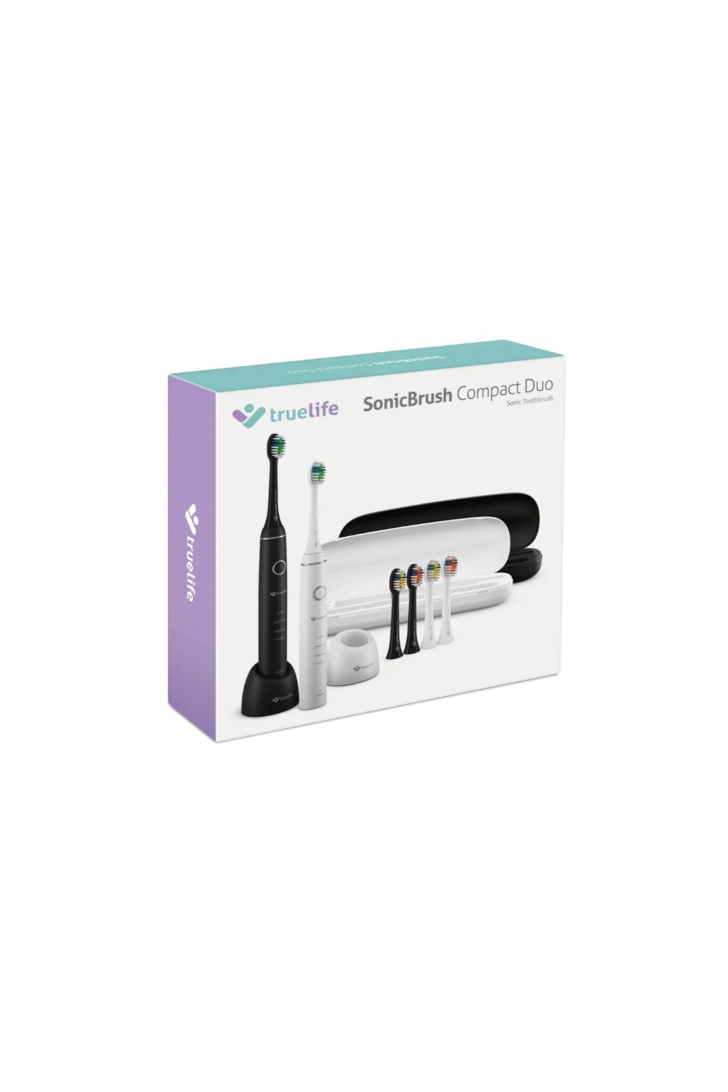 A Truelife SonicBrush Compact Duo Set készletben két szonikus fogkefe (fekete és fehér változat), négy fogkefefej, két utazótáska és két töltőállomás található. Kényeztesse magát exkluzív fogápolással, amely ragyogó mosolyt varázsol az arcára, és esélyt sem ad a káros baktériumoknak.