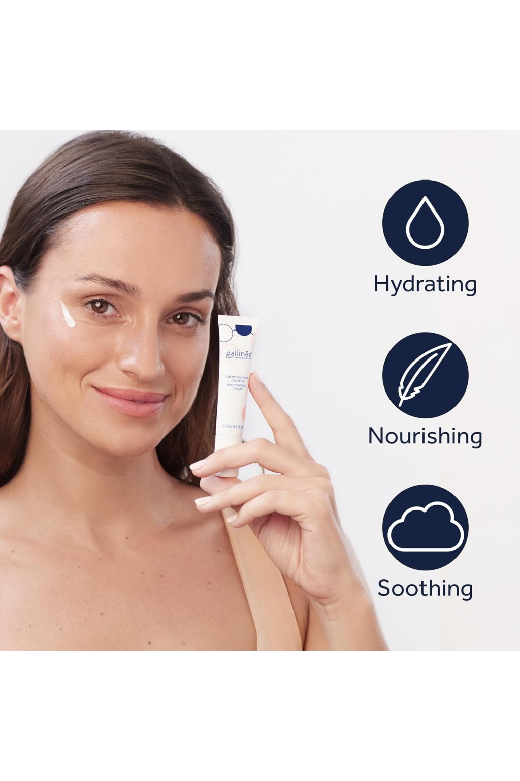 A Gallinée szemkrém prebiotikumok, probiotikumok és természetes eredetű összetevők, például sheavaj segítségével küzd a szem alatti sötét karikák és az irritáció ellen. Hidratálja és táplálja a bőrt, valamint ápolja az érzékeny bőrt.