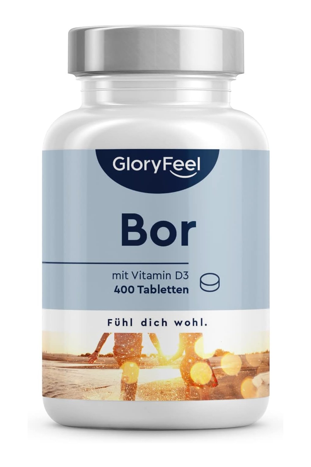A Gloryfeel Bor 400 tablettát tartalmazó étrend-kiegészítő, a bór és a D-vitamin kombinációjának kettős erejét tartalmazza.