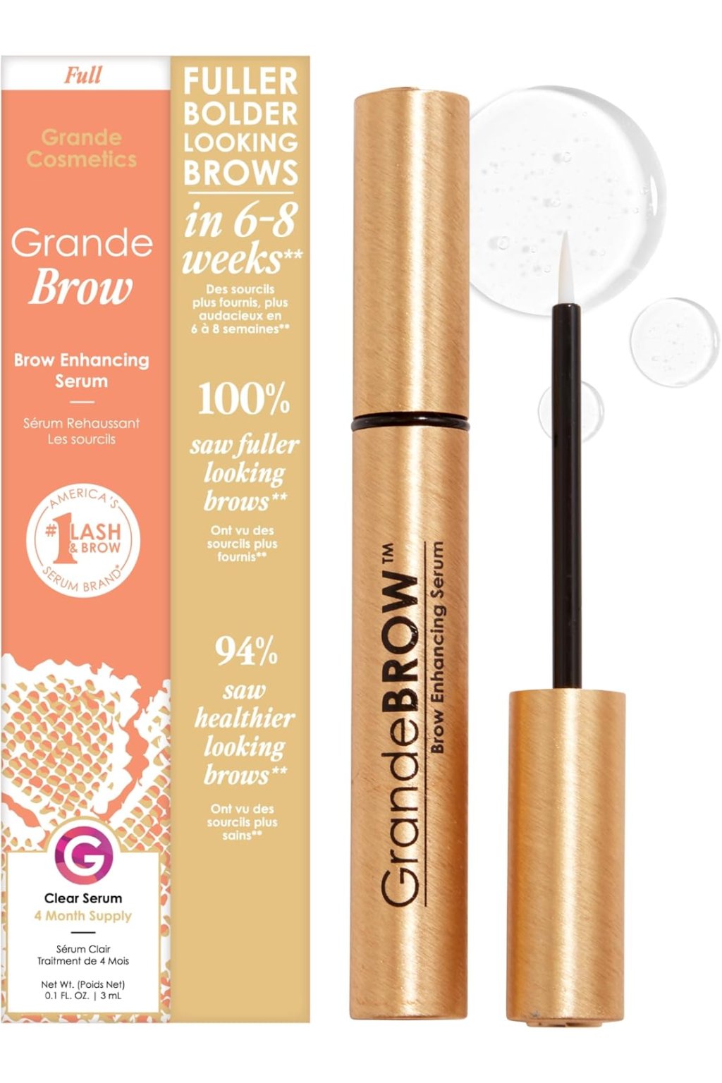 Grande Cosmetics GrandeBROW szemöldök szérum a teltebb, kifejezőbb szemöldökért 3 ml egy rendkívül hatékony ápoló szérum, amely célzottan támogatja a sűrűbb és természetesebb megjelenésű szemöldök kialakulását. Könnyű, gyorsan felszívódó textúrája behatol a szőrszálak gyökereibe, és táplálja őket anélkül, hogy zsíros érzetet hagyna maga után. A szérum magas koncentrációban tartalmaz peptideket, vitaminokat és növényi kivonatokat, amelyek megerősítik és revitalizálják a szemöldököt, minimalizálják a törékenységet és kiemelik a kontúrokat. Rendszeres használatával javul a szemöldök általános szerkezete, és teljesebb, kifejezőbb és természetesen definiált szemöldökformát lehet elérni, smink vagy tetoválás nélkül.