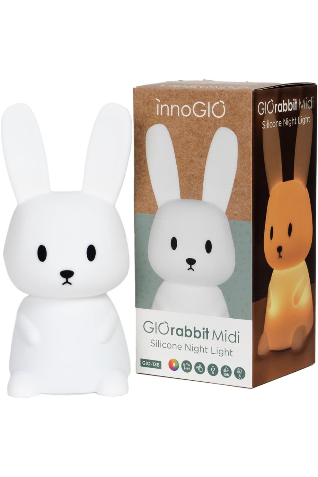 Édes álmok a babádnak a GIOrabbit macska alakú éjszakai lámpával: vidítsd fel a babád szobáját ezzel a vidám InnoGIO éjszakai lámpával. A lámpa finom, nyugtató, színváltó fényével (8 szín) kíséri el a babádat az álmok birodalmába.