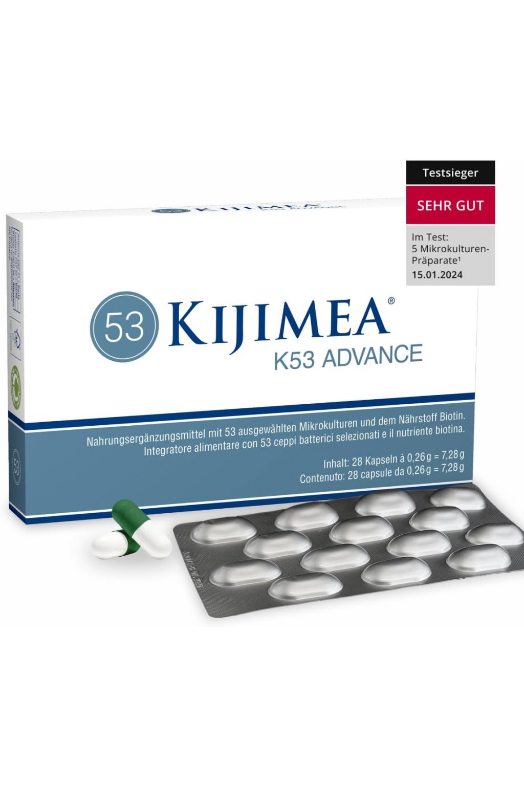 A Kijimea K53 Advance kapszulánként > 20 milliárd úgynevezett kolóniaképző egységet (CFU) tartalmaz, havi csomagonként > 500 milliárdot. Ez nagyobb mennyiségű mikrokultúrának felel meg, mint amennyit 25 kg joghurt tartalmaz.