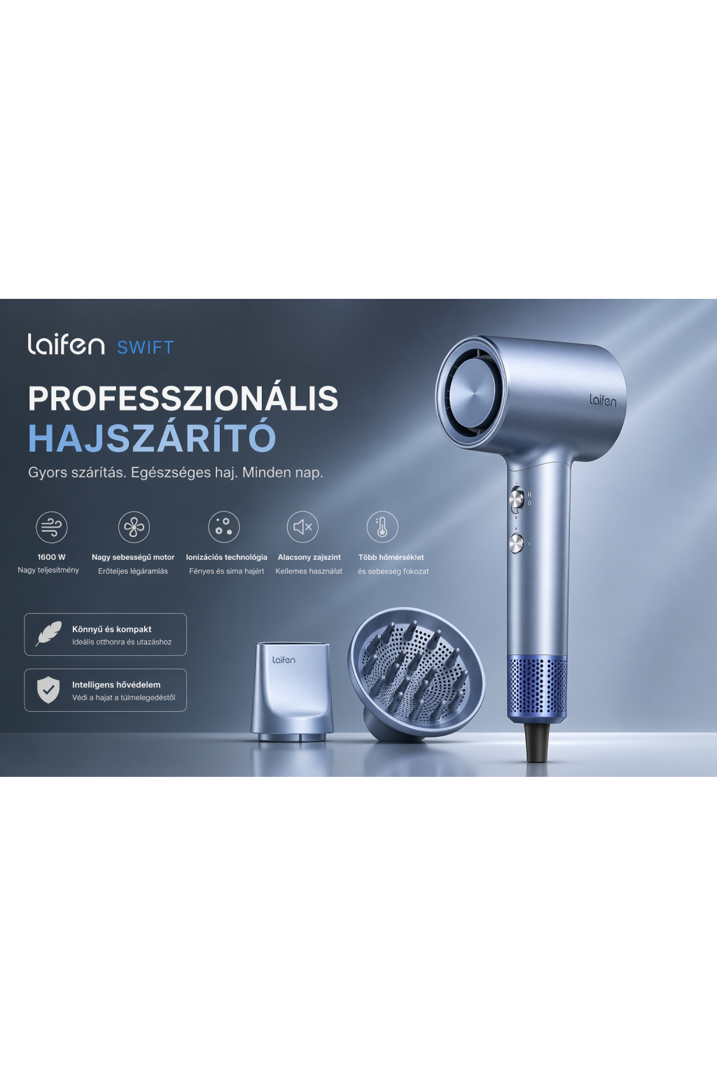 A Laifen Swift egy modern, nagy teljesítményű hajszárító, amely a gyors szárítást ötvözi a fejlett hajvédelmi technológiával. Kompakt kialakítása és elegáns ezüst-kék dizájnja ideálissá teszi mindennapi használatra, akár otthon, akár útközben.