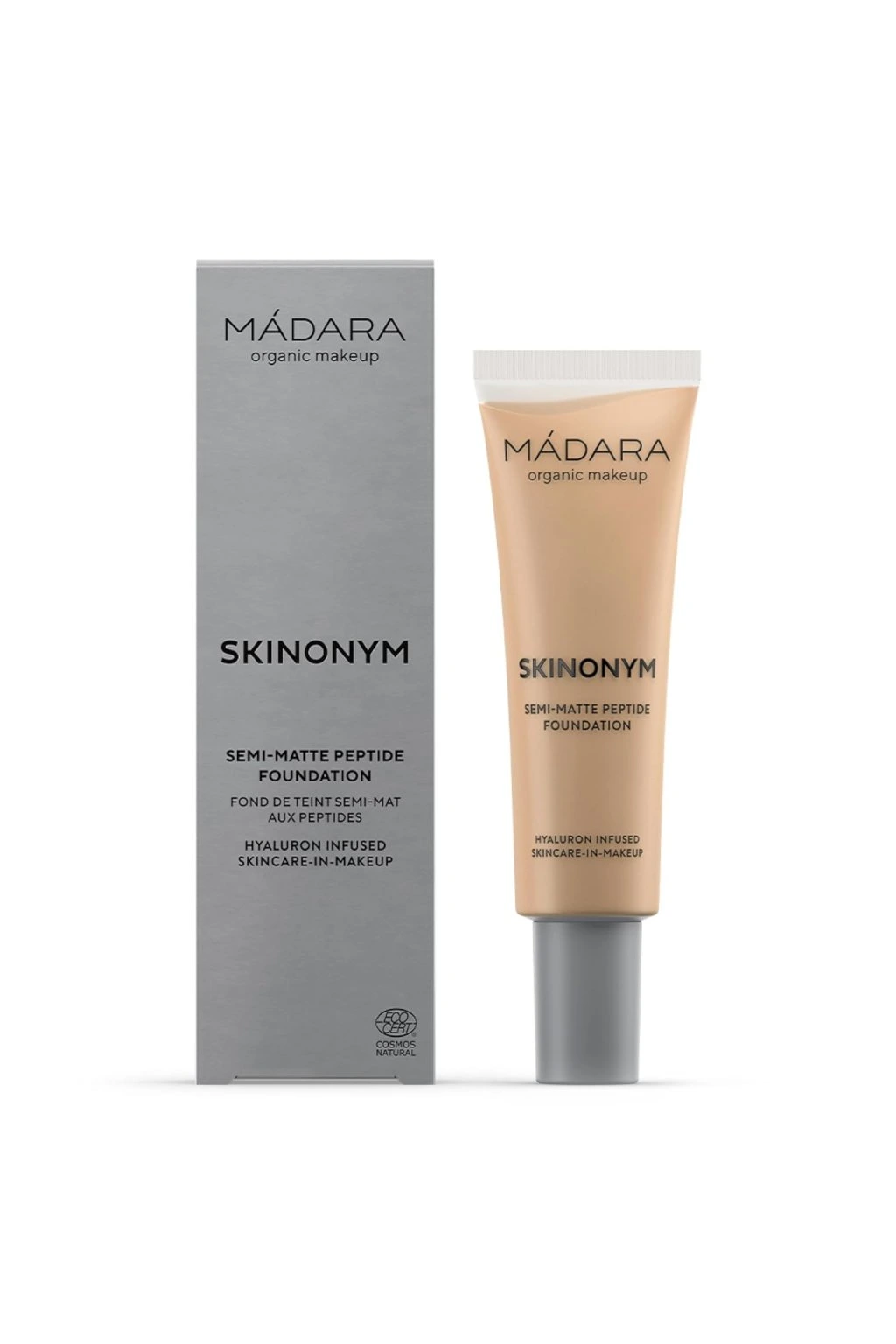 A MÁDARA SKINONYM Semi-Matte Peptide Foundation 30 ml ideális a bőr tónusának kiegyenlítésére, és segít természetes, félmatt megjelenést kialakítani maszkhatás nélkül. Segít eltakarni a bőrhibákat, a finom ráncokat és a bőrpírját, és sima, puha, optikailag kisimított bőrt eredményez. Ez az alapozó minden bőrtípusra alkalmas, beleértve a kombinált és zsíros bőrt is, és a peptideknek és hidratáló anyagoknak köszönhetően feszesebb és teltebb bőrt eredményez.