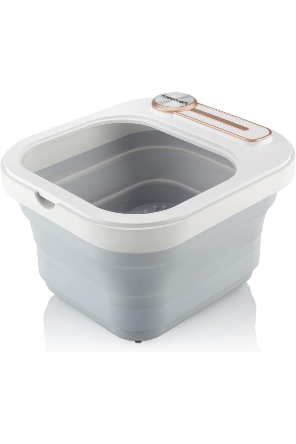 Ergonómikus lábfürdő: stabil edény speciális formákkal a lábak kényelmes elhelyezéséhez a masszázs alatt.