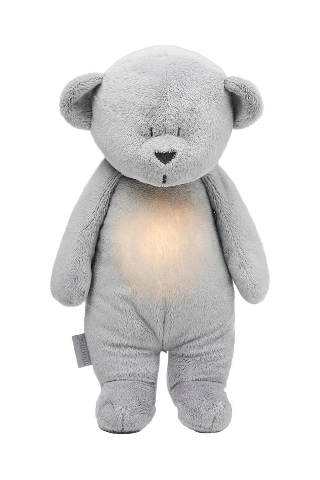 A Moonie Medvedík Silver tanúsított, biztonságos és rendkívül finom anyagokból készül, amelyek alkalmasak a gyermekek érzékeny bőrére. A modern szürke árnyalat elegáns és semleges hatást kelt, így minden gyermekes környezetbe illeszkedik. A kiváló minőségű kivitelezésnek köszönhetően a mackó nemcsak altatós, hanem kedvelt ölelhető játék is.