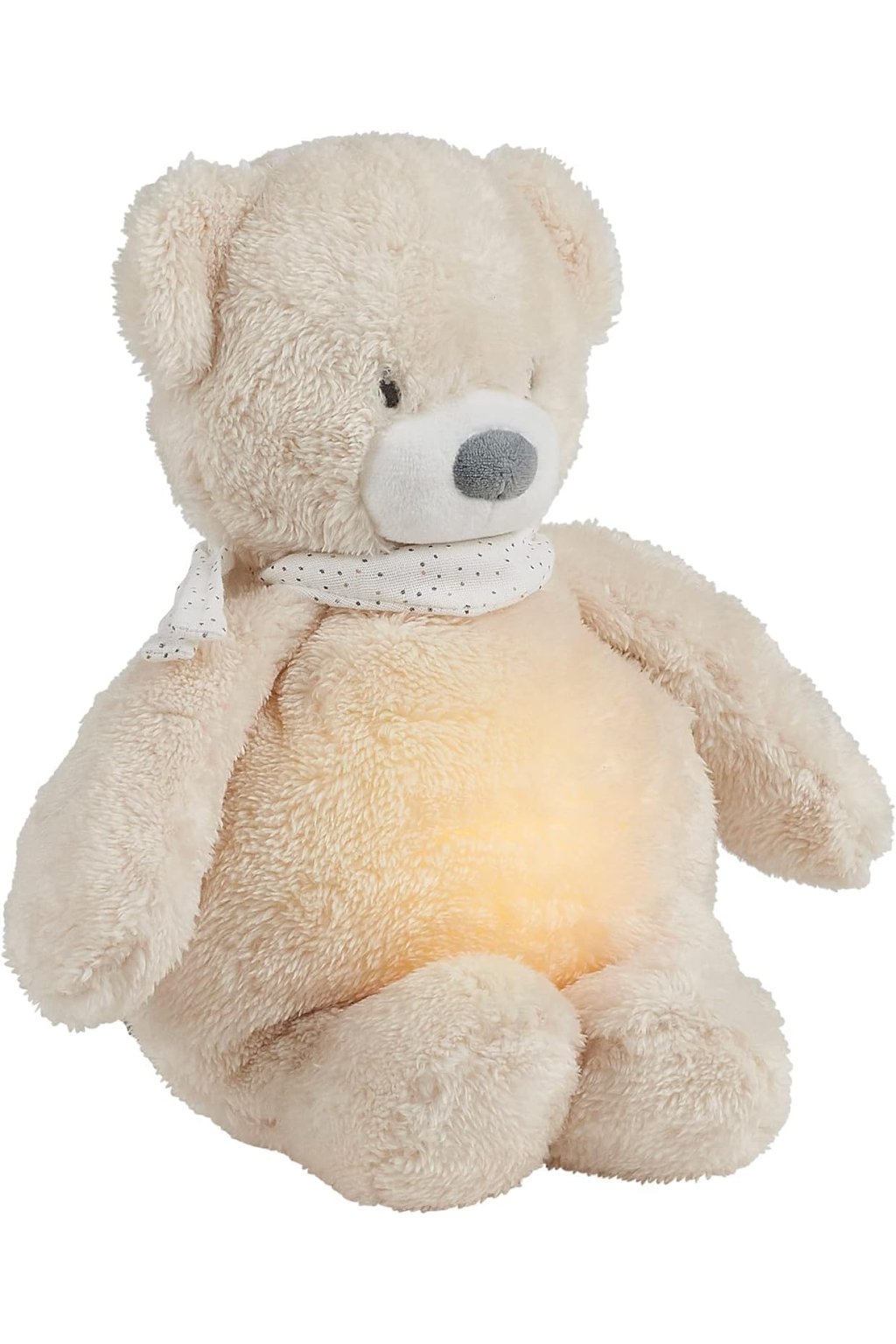 Szuper aranyos plüss mackó, amely éjszakai lámpaként is szolgál, 7 nyugtató színnel és nyugtató hangokkal, mint például fehér zaj, tenger, szívverés és altatódal – nyugodt alvás mindenkinek!