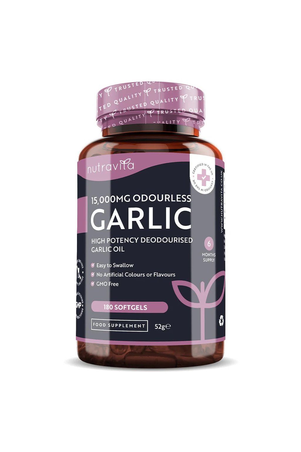 ANutravita fokhagyma kapszula olyan étrend-kiegészítő, amely a fokhagyma egészségügyi előnyeit a kellemetlen szag nélkül biztosítja. Minden egyes lágy gélkapszula 15 000 mg szagtalan fokhagymaolaj-kivonatot tartalmaz , ami 15 000 mg fokhagymagumónak felel meg. A kivonási eljárás megőrzi az Allicin nevű erős természetes vegyületet , amely számos egészségügyi előnyéről ismert.