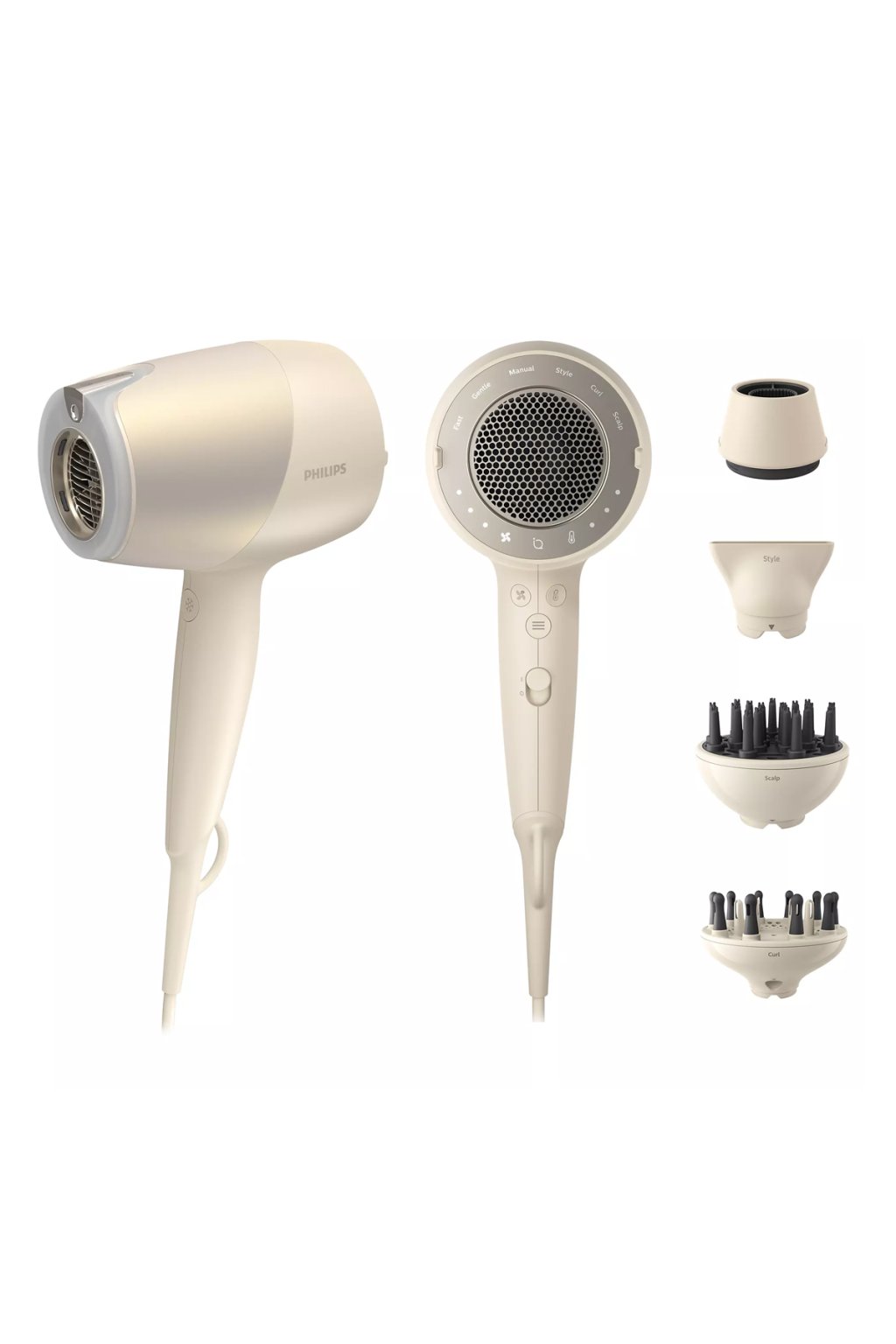 A Philips 9000 sorozatú hajszárító SenseIQ technológiával folyamatosan méri a haj hőmérsékletét, és szabályozza a hőmérsékletet, hogy megelőzze a haj károsodását. Az egészséges, ragyogó hajért.