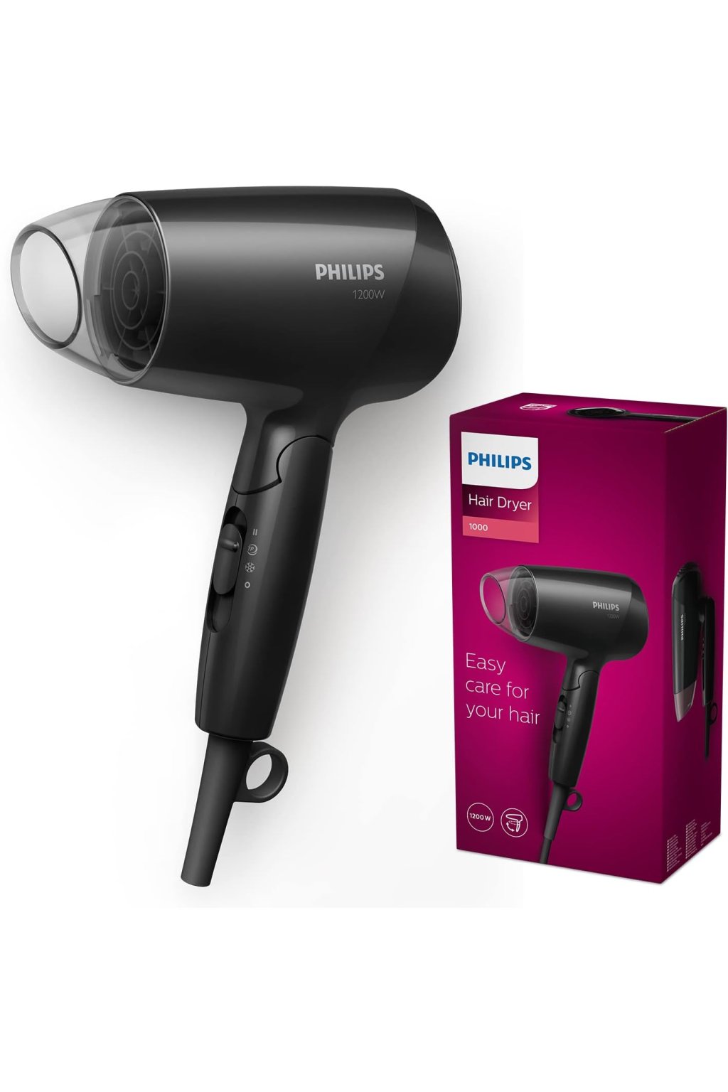 A Philips EssentialCare BHC010/10 egy kompakt hajszárító, amely ideális mindennapi használatra, különösen akkor, ha könnyű, kíméletes és kényelmes hajszárítást keres otthonra vagy utazáshoz.