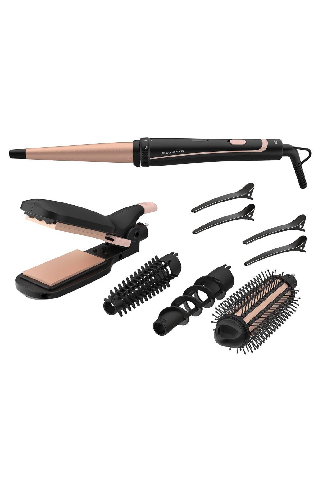 14 az 1-ben formázás: Kúpos kefe a káprázatos fürtökért, 32 mm-es forrólevegős kerek kefe a volumenért és a hullámos fürtökért, 2 az 1-ben hajvasaló és göndörítő a divatos göndörítéshez és a lenyűgöző hajkiegyenesítéshez, és még sok más