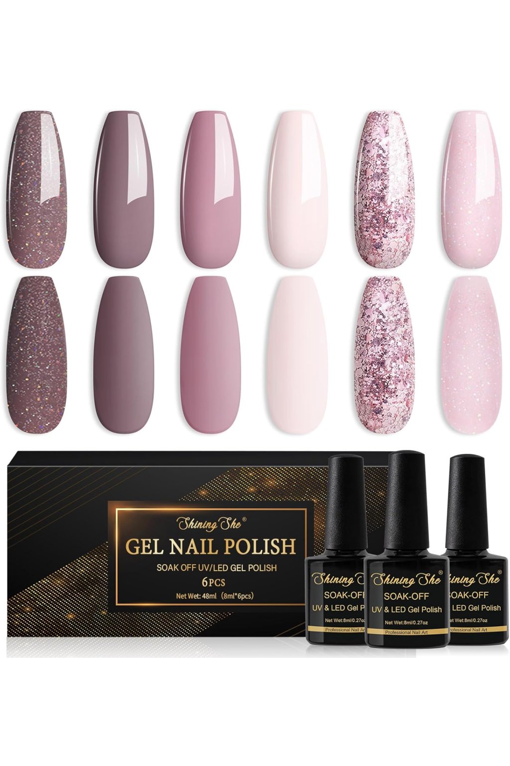 Shining She Gel Nail Polish Pink 6 színben - pink+taupe 8 ml