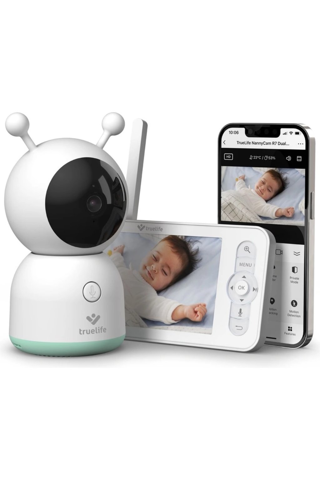 A TrueLife NannyCam R7 Dual Smart modern, intelligens bébiőr, amely a legújabb technológiát ötvözi a maximális biztonság és kényelem érdekében. Kettős kijelzési lehetőséggel (okostelefon és monitor), Full HD felbontással és éjjellátó funkcióval biztosítja, hogy mindig szemmel tartsd gyermeked – bárhol is legyél.