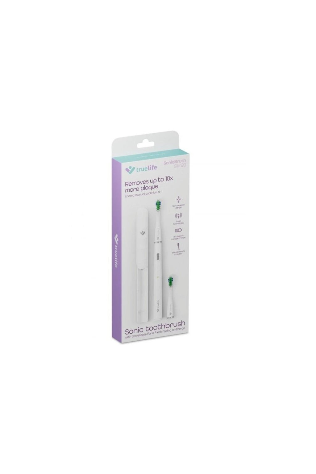 Az áramellátást egy beépített újratölthető akkumulátor biztosítja, amely normál használat mellett egy feltöltéssel több napig is kitart. A fogkefe könnyen pótolható a TrueLife szonikus fogkefékkel kompatibilis fejekkel, ami növeli a higiéniai színvonalat és meghosszabbítja a készülék élettartamát. A TrueLife SonicBrush Slim20 White szonikus elektromos fogkefe hatékony, kényelmes és kíméletes megoldás a mindennapi szájápoláshoz.