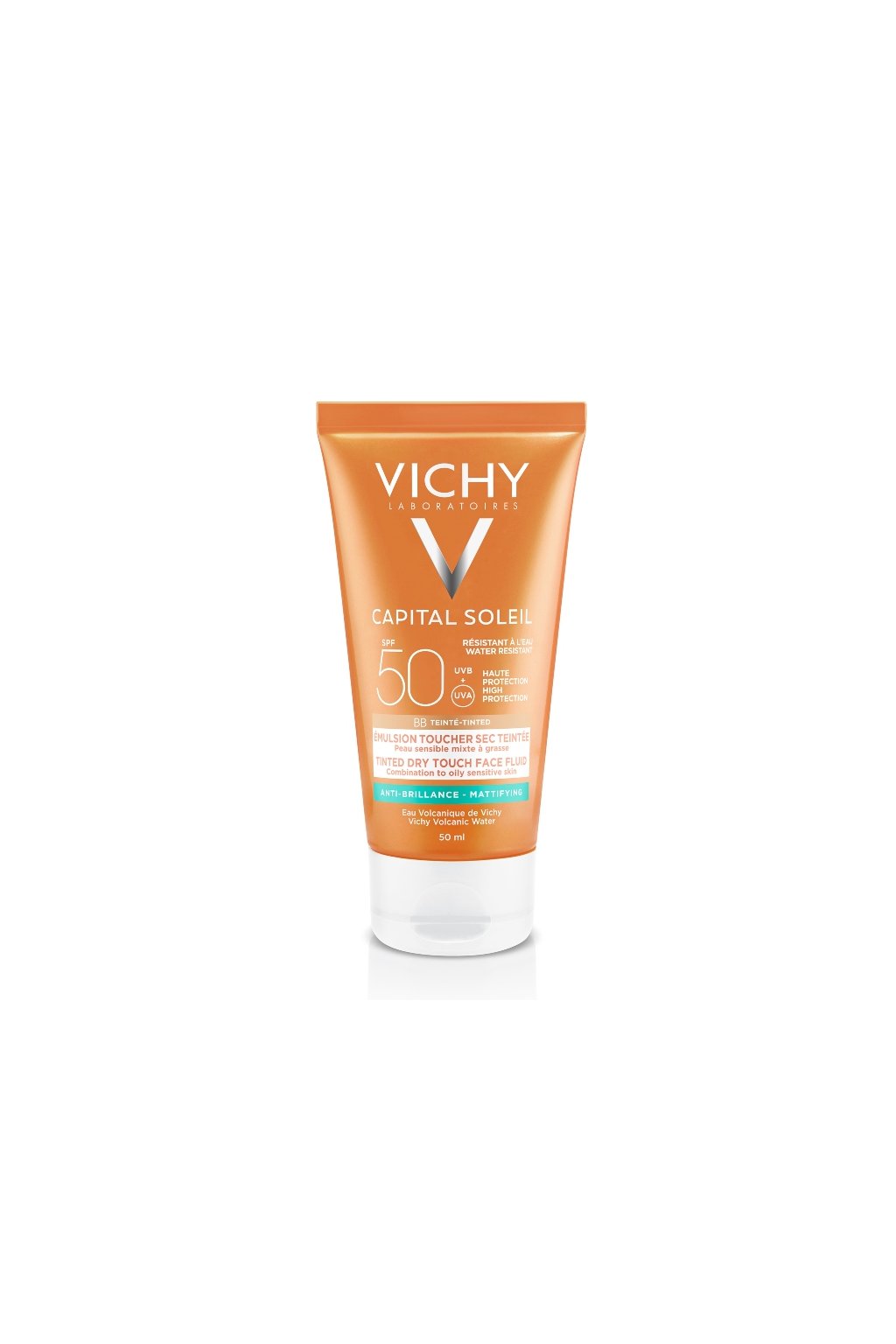 A Vichy idéal Soleil BB Emulsion Coloured Effect Dry SPF 50+ egy fényvédő arcápoló. Ideális a zsíros, érzékeny vagy kombinált bőrűek számára. Textúrája selymes és friss, könnyen felvihető és nem zsíros.