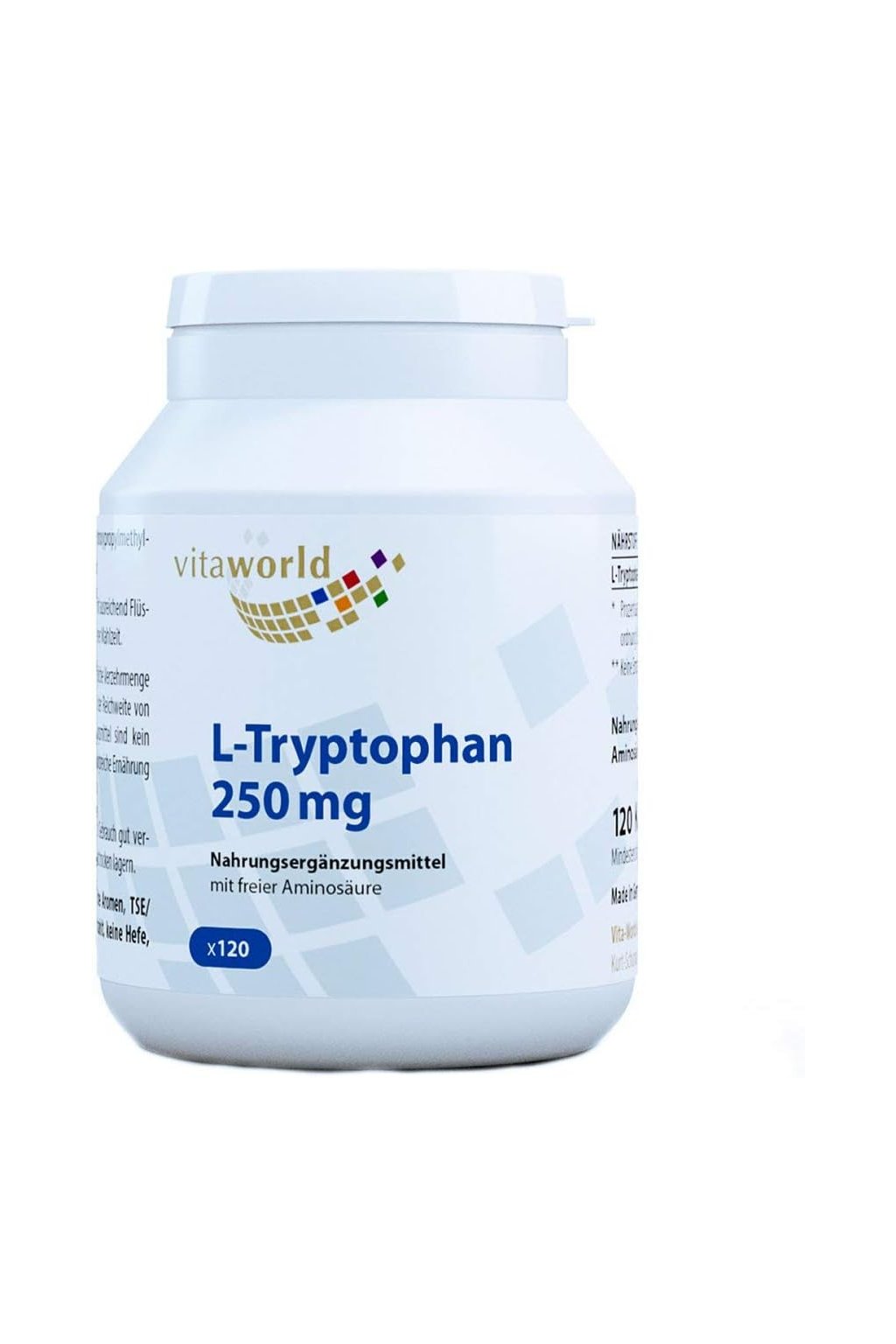 Vitaworld L-triptofán 250 mg, vegán, 120 kapszula egy táplálékkiegészítő, amely a lelki egyensúly, a jobb alvásminőség és a hangulat kiegyensúlyozására szolgál.