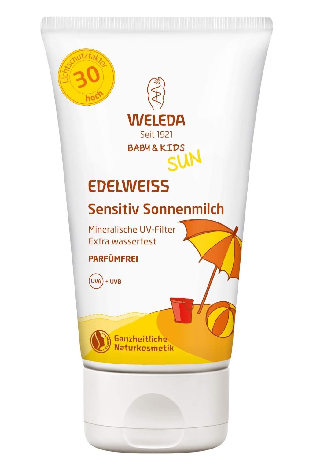 Weleda Gyermek naptej SPF 30 Sensitive, 150 ml egy kíméletes védőtej, amelyet a napfénynek kitett érzékeny gyermekbőr számára fejlesztettek ki. Könnyű, krémes textúrája jól kenhető, gyorsan felszívódik, és hidratált, védett bőrt hagy maga után, kellemetlen érzés nélkül. Megbízható védelmet nyújt az UVA- és UVB-sugárzás ellen, így segít megelőzni a leégést és a bőr károsodását. Összetétele támogatja a bőr természetes egyensúlyát, és nagyon érzékeny gyermekbőrre is alkalmas. A bőr finom, megnyugtatott és kényelmes marad a napon tartózkodás alatt.