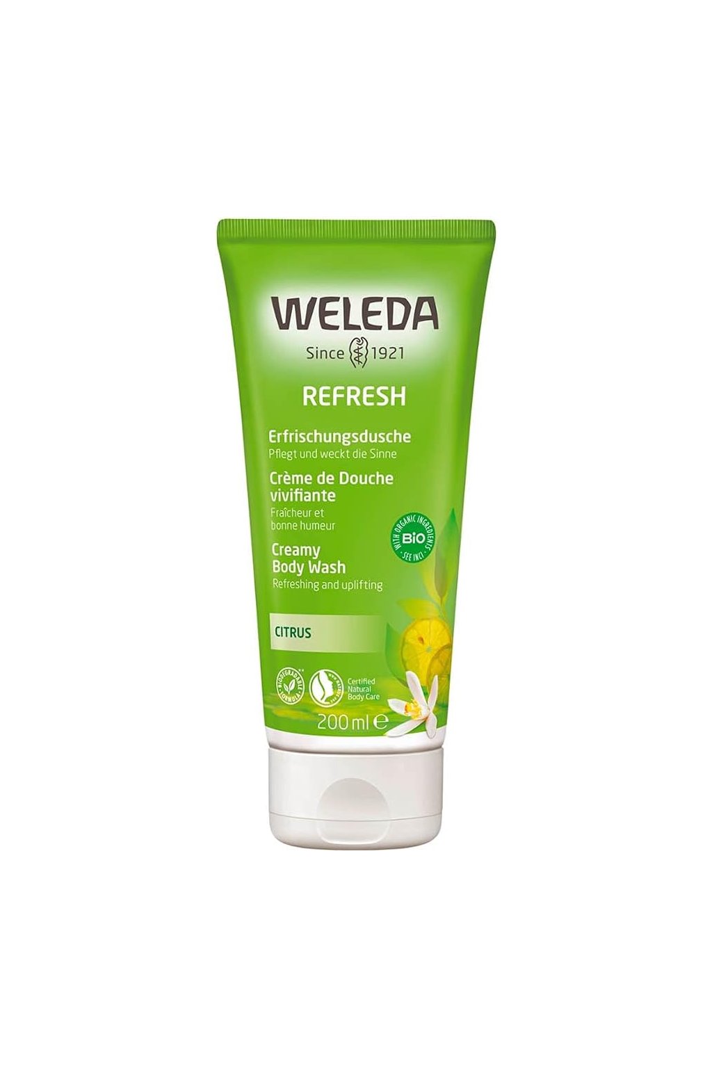 A WELEDA Citrusos krémtusfürdő 200 ml ideális a bőr felfrissítésére és az érzékek élénkítésére a napi zuhanyzás során. A finom krémes textúra gyengéden tisztít, miközben megőrzi a bőr természetes egyensúlyát. Tápláló növényi olajokat tartalmaz, amelyek hidratálják a bőrt, puhává és rugalmassá téve azt anélkül, hogy száraznak érezné. A citrusos illat azonnali frissesség- és energiaérzetet biztosít, így ez a tusfürdő különösen alkalmas reggeli használatra. A termék ideális minden bőrtípusra és napi ápolásra.