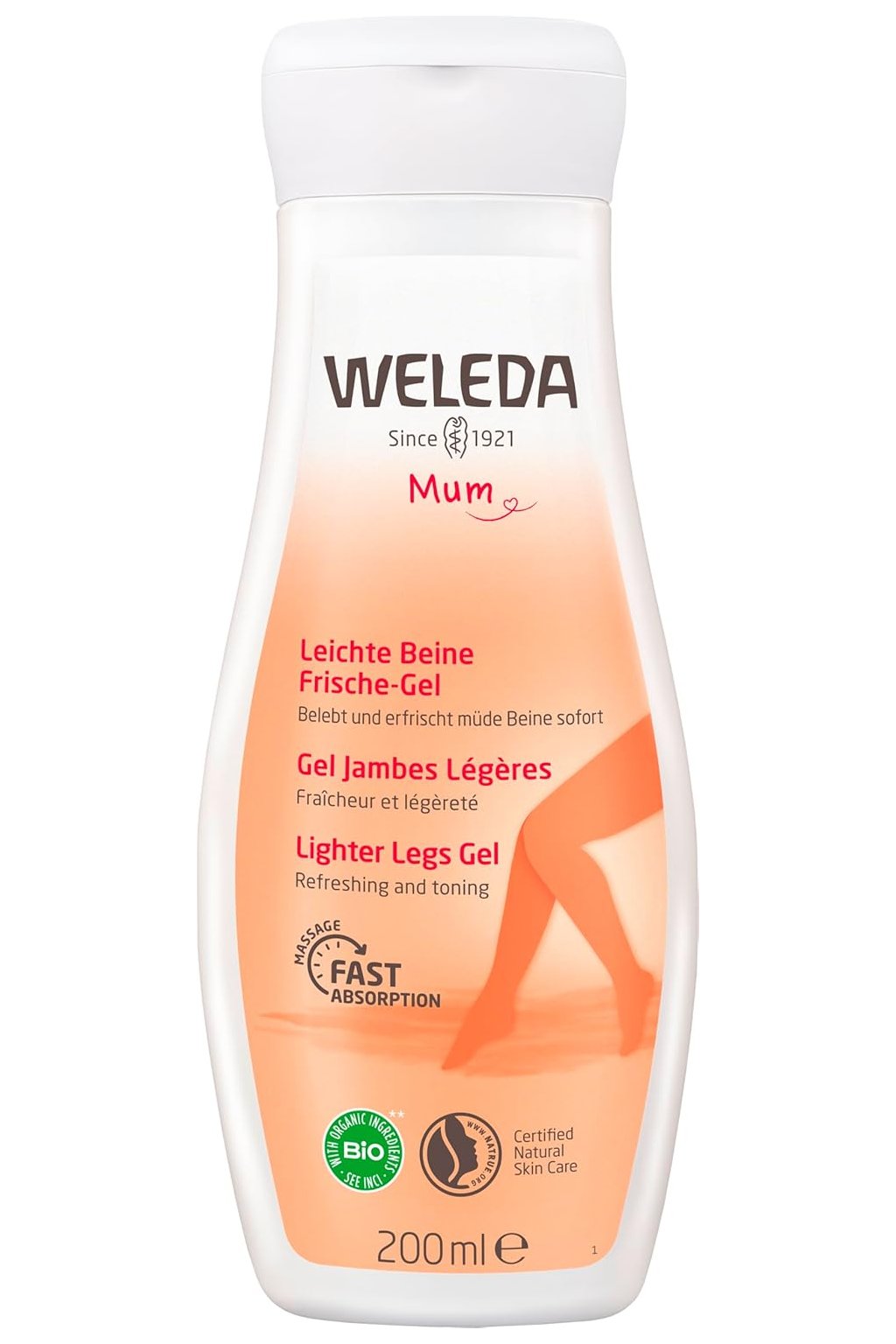 A Weleda Mama Fresh Light Foot Gel 200 ml egy kifejezetten terhes nők számára kifejlesztett frissítő gél, amely enyhíti a nehéz és fáradt lábak érzését. Könnyű, nem zsíros formulája gyorsan felszívódik és azonnali enyhülést biztosít. Aktiváló tulajdonságairól ismert természetes növényi kivonatokat tartalmaz, amelyek revitalizálják és táplálják a láb bőrét. A gél ideális a terhesség alatt történő használatra, és támasztó- és kompressziós harisnyákkal is kombinálható.