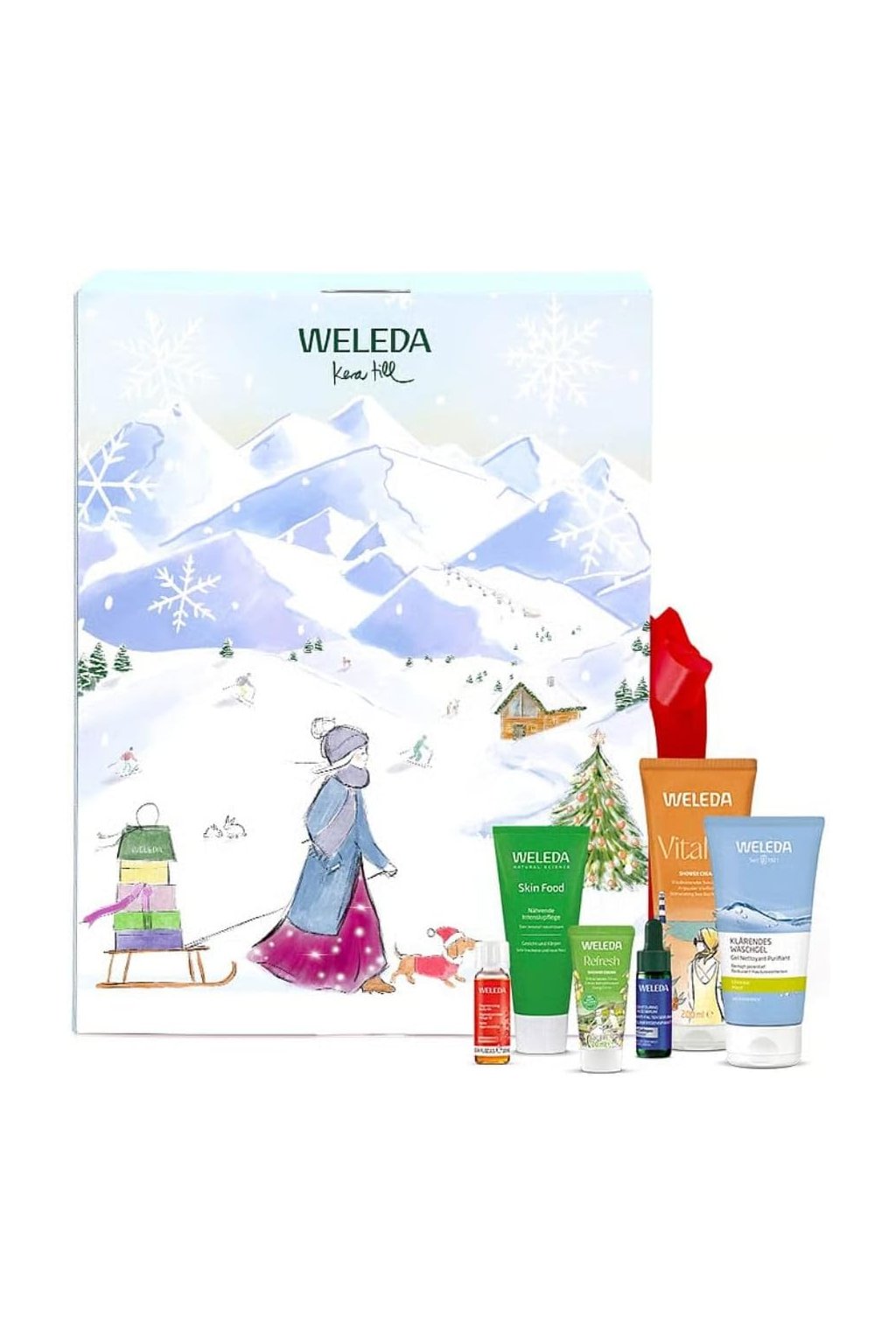 24 meglepetés: a 24 aprólékosan kidolgozott ajtó mögött 11 eredeti termék és 9 miniatűr rejtőzik – a legjobb minőségű természetes kozmetikumok a mindennapi kényeztetéshez. 4 tasak Demeter minőségű magvakkal biztosítja a nagyobb biodiverzitást és hozza el a Weleda növényeket az otthonába.